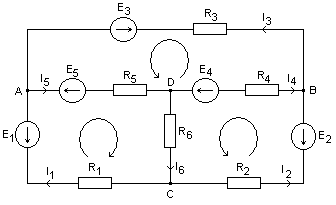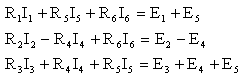 Na podstawie II prawa Kirchhoffa układamy n-k+1 = 3 równań dla oczek ADCA, BDCB, ADBA: